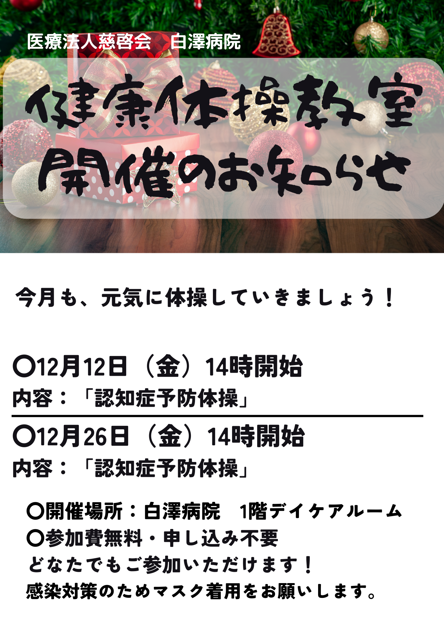 しっかり運動してよい年を迎えましょう!お待ちしております。