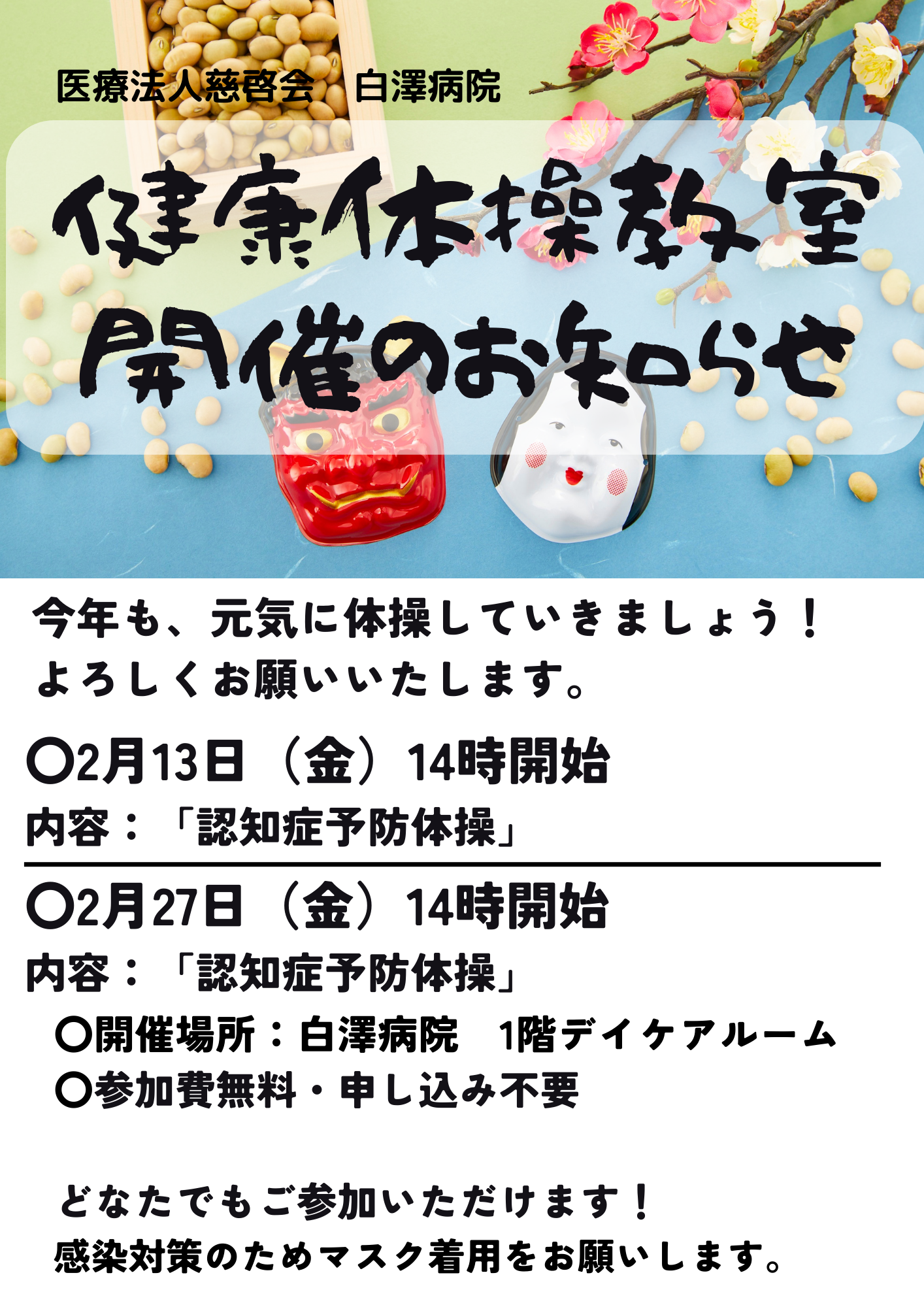 2月の健康体操教室のご案内です。